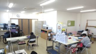 昼食を食べながら、仲の良い他事業所の仲間たちを見つけては話し込む仲間の姿もありました。交流を通して、とみはりの杜を後にする頃には思い出深い昼下がりとなりました。そして、最後には「お祭り屋台組合の皆さん、ステキなクリスマスプレゼントをありがとうございました」と仲間たちはお礼を言い、送迎車両に乗り込み、わらしべの里へ戻りました。